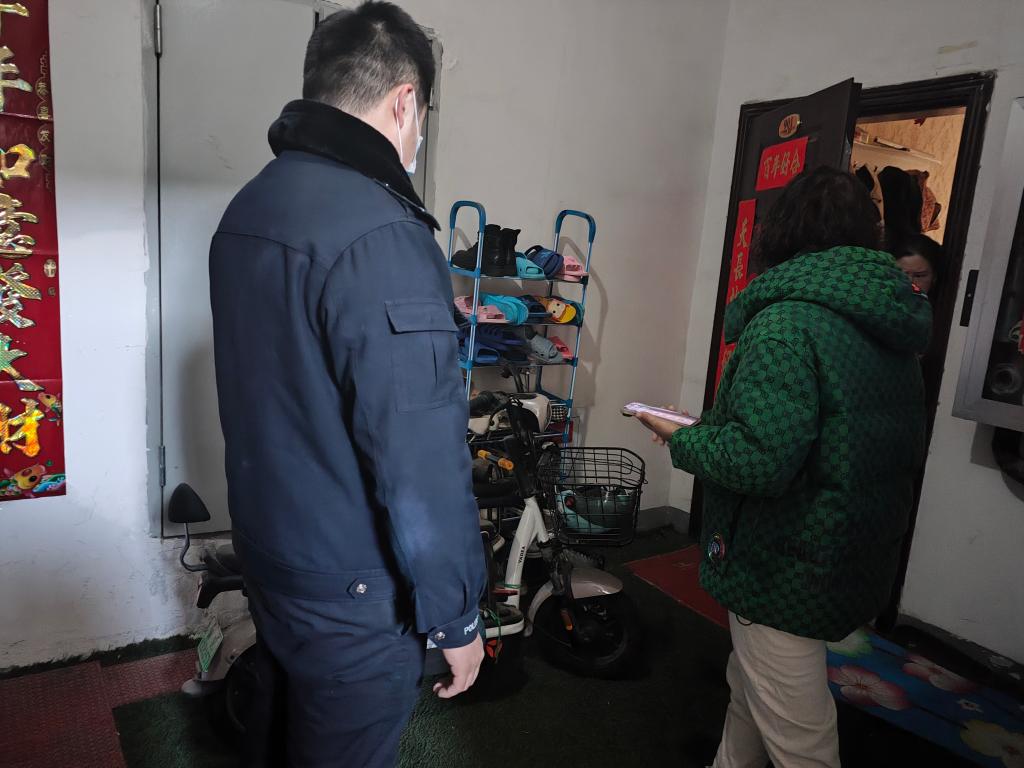 排查过程中,社区干部、志愿者、物业工作人员对小区楼道内是否停放电动自行车、私拉电线充电等行为进行了排查,并提醒居民电动车应停放在安全地点,劝阻居民电动车莫入楼道,引导居民规范停放电动车。
