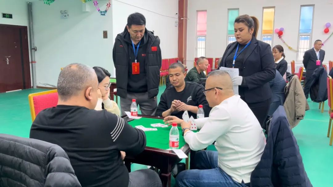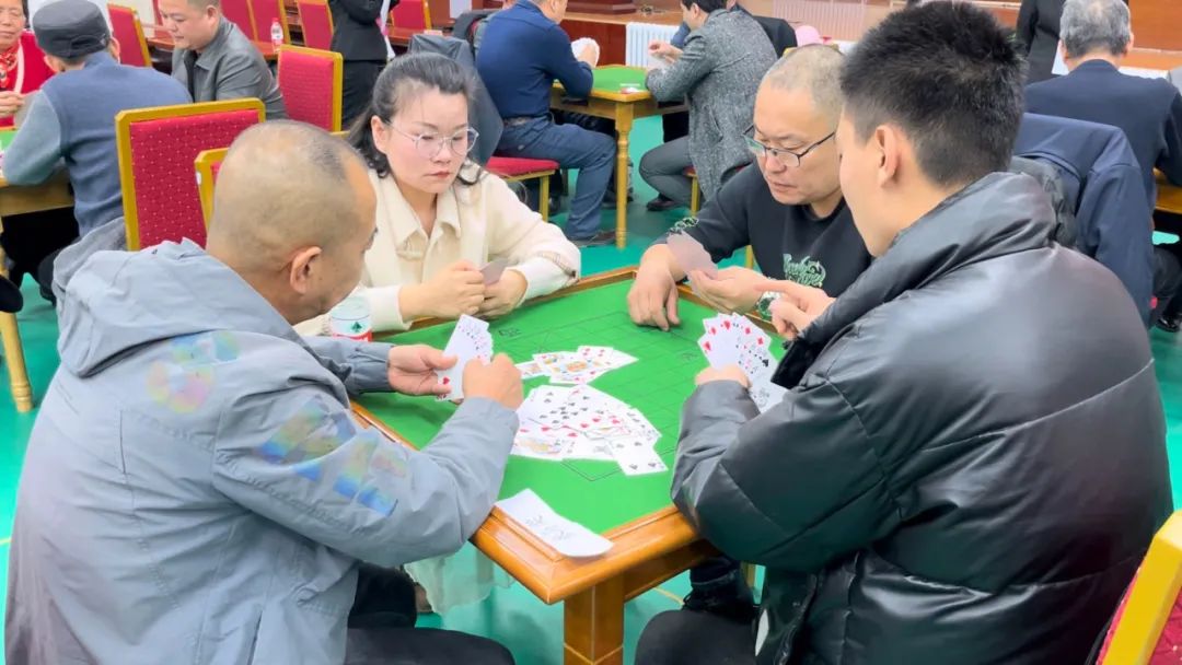 随着裁判长一声令下,比赛正式开始,各位选手立即全神贯注地投入到如火如荼的对局之中。比赛过程中,参赛者们各显身手,配合默契,斗智斗勇,时而沉着应战,见招拆招,精确计算;时而谈笑风生,灵活应对。对阵双方比牌技、拼手气、比智慧,赛成绩、促友谊。加油助威的观众认真观战、悉心学习,现场欢笑声此起彼伏,一派其乐融融的景象。