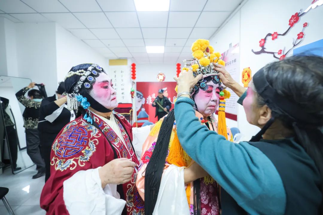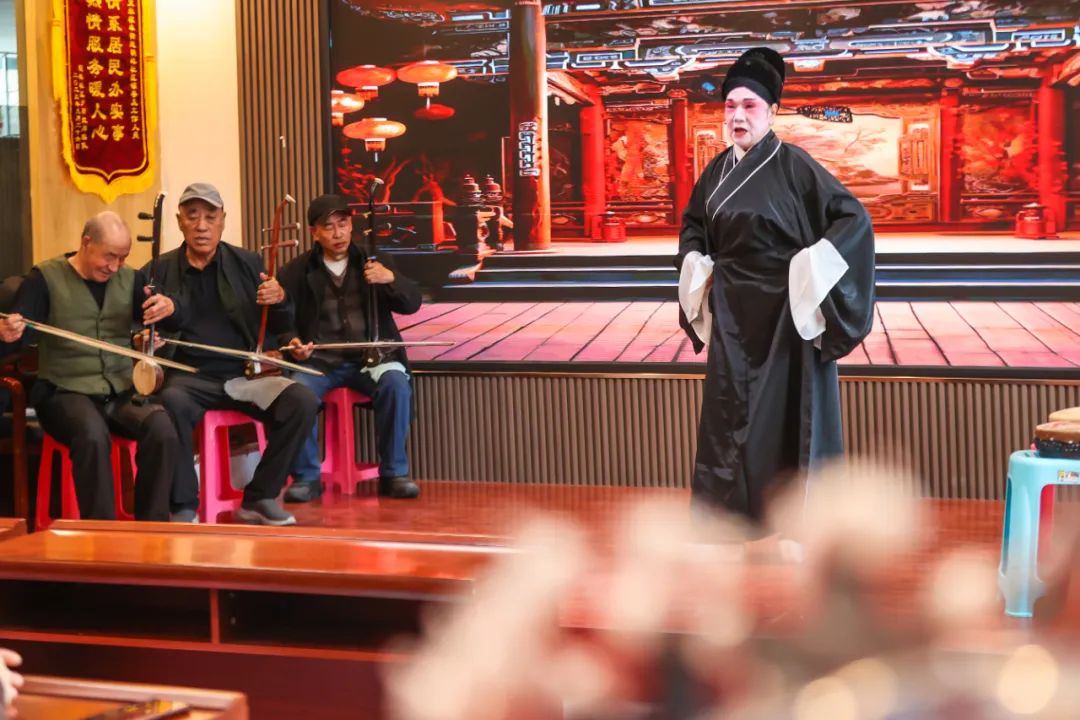 他们是该社区辖区群众组成的明珠社区“粹乐坊”戏曲服务队的演员们,这是一支自发组织的队伍。成立初期,成员寥寥无几,经过一段时间的发展,如今已经是20余人的成熟团队,成员年龄在60岁至80多岁。