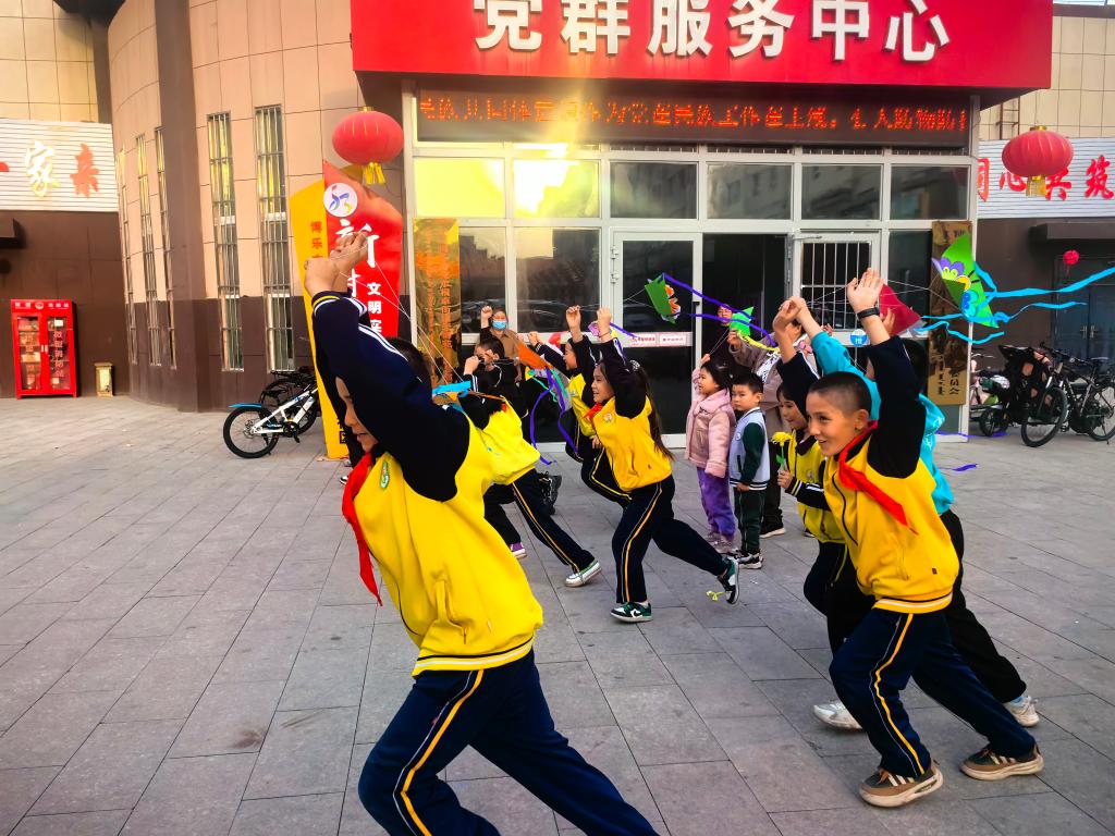 随后,社区工作人员带领着小朋友们制作手工菊花和纸鸢,用手作菊花的方式让小朋友们把对革命先烈的崇敬和思念都寄托于手中的菊花,小朋友们手拿着亲自制作的菊花,在网上的人民英雄纪念碑前进行云祭扫,向革命先烈鞠躬、献花,向革命英雄致敬。以纸鸢为媒,以手绘为介。小朋友们用五彩斑斓的颜色为想象插上翅膀,将自己心中的春天和对先辈们的缅怀之情一笔一画的绘于空白的风筝上,用自己的想象表达着他们对革命先辈的敬仰和对春天的喜爱之情。既避免了焚烧纸钱等传统祭扫行为可能带来的环境污染,也体现了对传统节日的新理解和新实践。追梦天空,筝舞飞扬。随后,小朋友们拿着自己绘制好的风筝,来到社区小广场,将一只只带有美好祈愿和怀念之情的风筝放飞蓝天。风筝乘着风,承载着小朋友童真的快乐,向着天空飘摇直上。“快看,我的风筝飞起来了!”小朋友们拽着风筝,迎着春风奔跑嬉戏,放飞快乐和梦想,享受着童年的乐趣。美丽的风筝飘扬在空中,让这个春天更加生动了。本次活动不仅让孩子们感受到了中华传统文化的魅力,也传递了绿色文明理念,更引领了移风易俗新风尚。