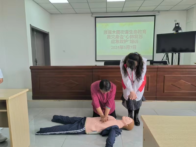 “双手重叠,十指相扣,掌心翘起,垂直向下按压……”在应急救护培训中,顾里木图街道社区卫生服务中心医护志愿者向社区干部、居民群众介绍了心肺复苏的原理、适应症、禁忌症等基本知识,详细讲解了心脏骤停的判断方法以及心肺复苏操作流程。居民通过实际操作模拟人,亲身体验按压的力度、频率和节奏,掌握救援技能,进一步提高干部群众在紧急情况下的自救互救能力。同时,传递了关爱生命、珍惜生命的理念,让更多的人关注急救知识,共同守护生命安全。