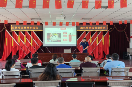 5月12日是全国防灾减灾日,为扎实开展好防灾减灾宣传周活动,进一步提高全体机关干部、各村队、企事业单位、经营户消防安全意识,2024年5月10日上午,贝林哈日莫墩乡邀请博乐市消防救援大队宣传干事陈曦组织开展消防安全培训演练活动。