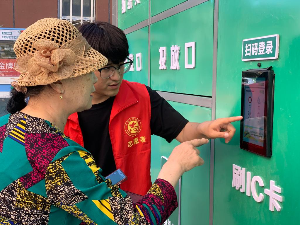 社区工作人员手把手地教居民使用智能回收箱,并引导他们扫码操作进行投放。居民需要通过手机微信扫码或使用IC卡注册会员并与手机号绑定即能使用这些回收站。志愿者们向居民介绍可以通过显示屏扫描微信登录或直接输入手机号操作,在投放可回收物后,智能回收箱会自动关闭并进行称重,实时返积分与金额给居民。居民们表示,这种智能化的废品分类方式既方便又实用。