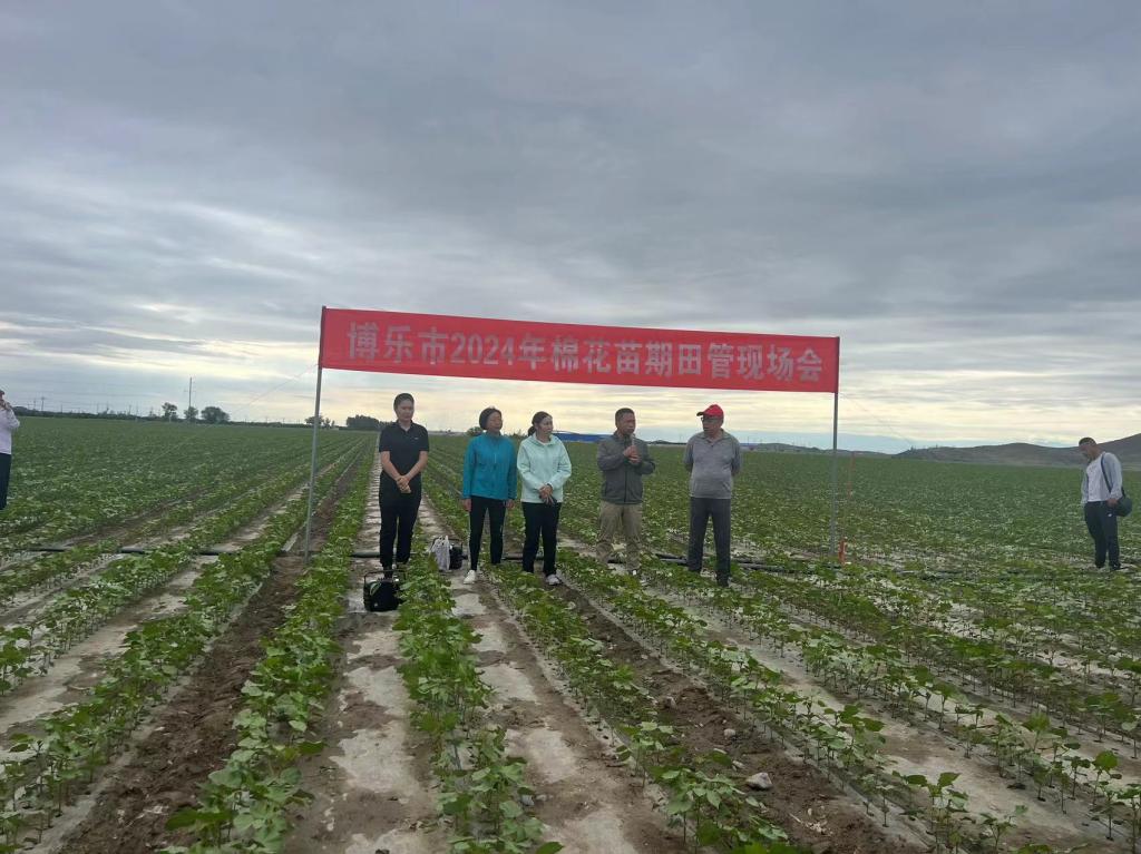 此次现场会结合当前棉花长势长相和气象趋势,就加强田管,化学调控促进根系生长,虫害防治等棉花创建苗期管理技术要点进行了培训,为实现棉花壮苗、早现蕾、多现蕾管理目标提供了技术保障。