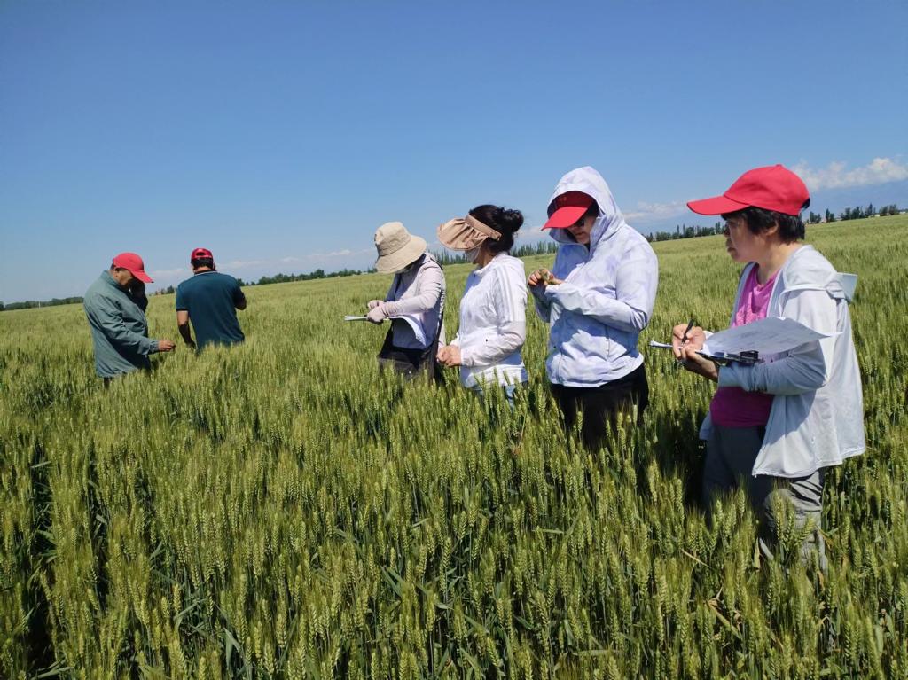 在小营盘镇冬小麦田间可以看到州、市、镇技术人员顶着火热的太阳穿梭在一块块麦田中,认真地进行着测产工作。“今年我们一共种植了0.95万亩冬小麦,看目前长势还不错,后期我们将进一步抓好田间管理工作,确保冬小麦丰产丰收”该镇农业发展服务中心吐鲁达洪主任感慨地说。