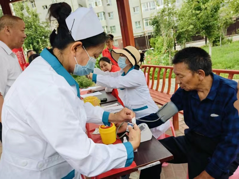 随后,开展健康义诊活动,居民们在干部的引导下有序排队等候,医护志愿者耐心细致地为居民们测量血压、听诊问诊,仔细询问他们的身体状况和日常饮食、作息习惯,针对高血压、心脏病等疾病给予专业的治疗建议和用药指导,倡导健康的生活方式,提醒居民要合理饮食、适量运动、保持良好的心态,预防疾病的发生。