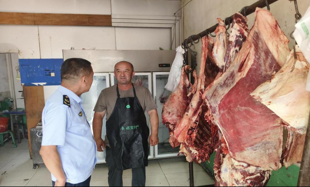 达勒特镇坚持每日对辖区商铺实行监督检查,每月对辖区3家销售肉类的经营主体检查1次,同时每周四重点检查集市,保持对肉类产品一切违法行为“零容忍”,执法人员通过现场对肉类动物检疫合格证明和肉品品质检验合格证明进行查验,查看是否真实有效、存储条件是否符合相关要求,及时对检查中存在的违法经营行为进行严厉查处。