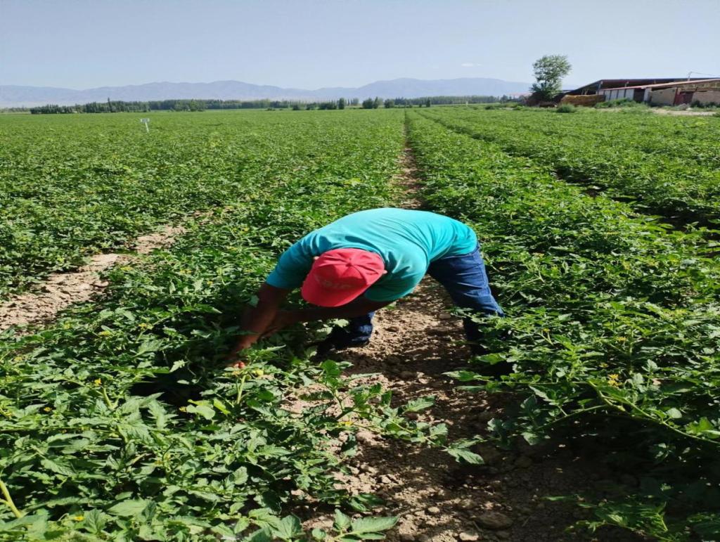 夏日的阳光洒在广袤的田野上,一片生机勃勃的景象映入眼帘。带着小红帽穿梭在田间的技术员正在认真查看着番茄的长势,“这片番茄一共有四千多亩地,于5月11日移栽,现在已进入田间管理主要阶段,我们将重点做好水肥、病虫害等方面的管理,确保番茄丰产丰收”技术员阿不力米提认真的说。