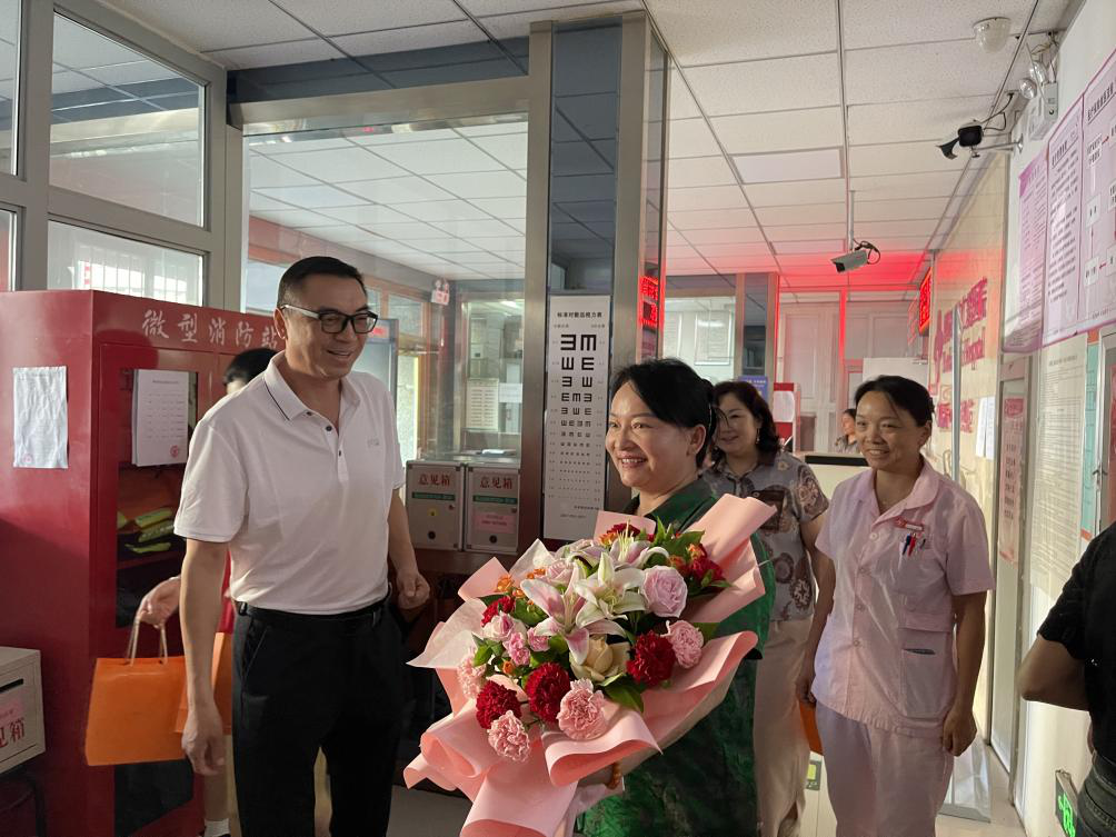 8月19日是第七个“中国医师节”,此次的主题是“崇尚人文精神,彰显医者仁心”,为表达对广大医师的敬意和感激之情。8月13日下午,在医师节来临之际,青达拉街道红星路社区来到辖区仁爱医院,向奉献在一线的医师们致以节日的祝福和崇高的敬意,并为他们送上慰问品和鲜花。