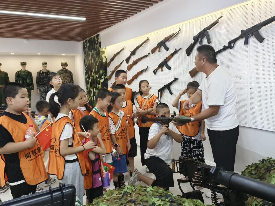 活动中,在志愿者和老师的带领下,首先由辖区一退伍军人为孩子们讲解军舰、坦克、战斗机、重型导弹等模型,从古老的枪械到现代化的武器系统,每一件展品都仿佛在诉说着我国军事发展的光辉历程,孩子们对军事装备的认识也进一步得到丰富。孩子们认真聆听介绍,不时发出惊叹,眼神中充满了对国防力量的敬仰。