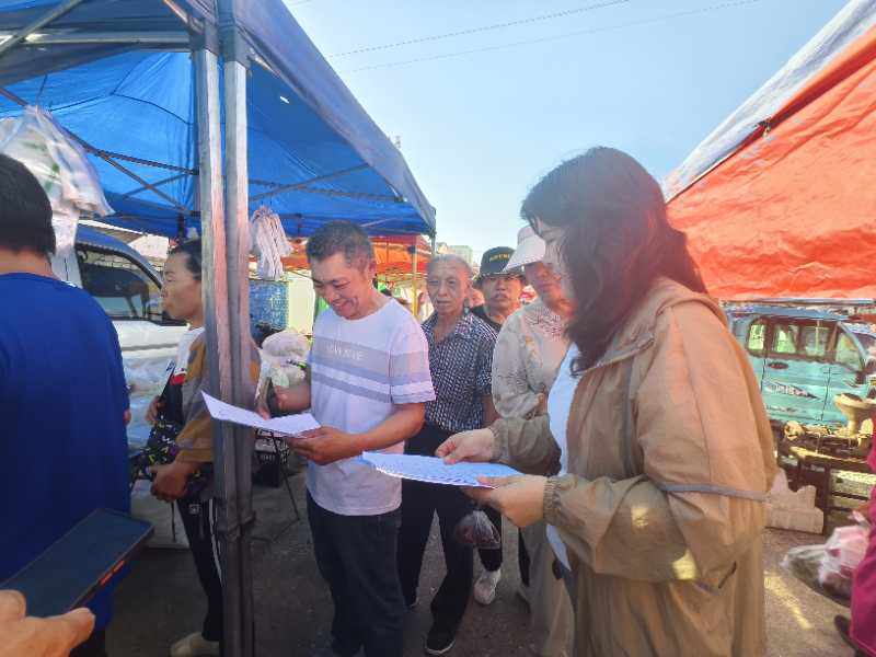 工作人员深入集市内部,发放信息岗位宣传页,面对面地宣讲政策,通过多种渠道助力群众实现就业,并宣传“零工超市”,达成就业信息共享,切实解决周边企业的用工需求。