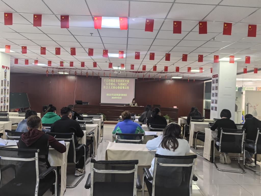 为进一步弘扬社会主义核心价值观,促进邻里间的和谐共融,营造温馨、友善的社区氛围。9月3日,青达拉街道书香社区开展“友爱暖心 与善同行”社会主义核心价值观宣讲活动。