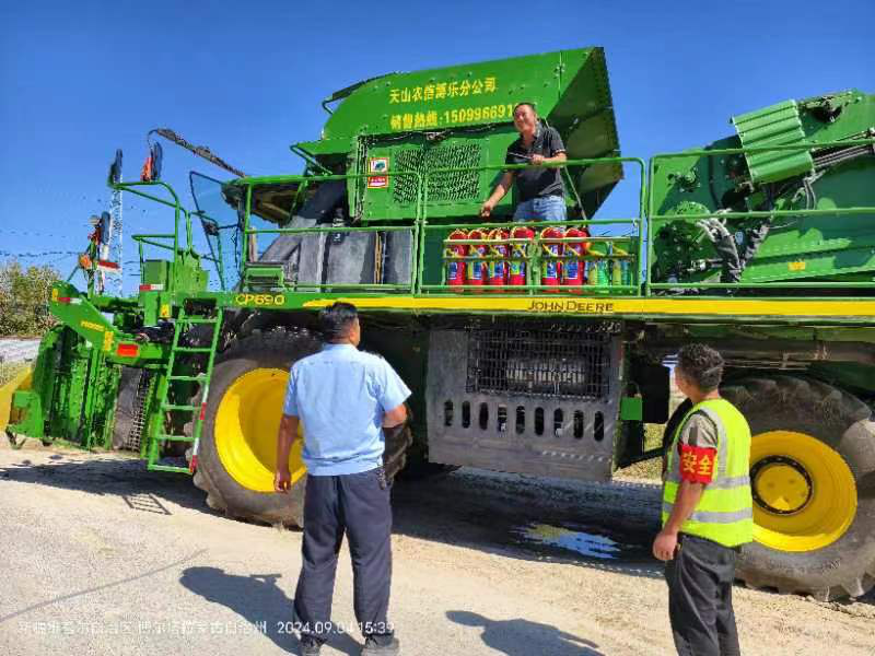 9月4日,乌图布拉格镇共审验各类农机40台,其中采棉机12台,审验中,工作人员对每台采棉机的外观、制动、转向、刹车、摘锭、脱棉盘、毛刷、液压油路、照明系统、采摘系统、反光膜张贴、消防设施等进行了详细检验。并现场对参加审验的驾驶员进行了安全教育和培训,确保农机工人正确使用采棉机,减少采收故障,高标准、高质量、高效率、无安全生产事故地完成今年的机采任务。