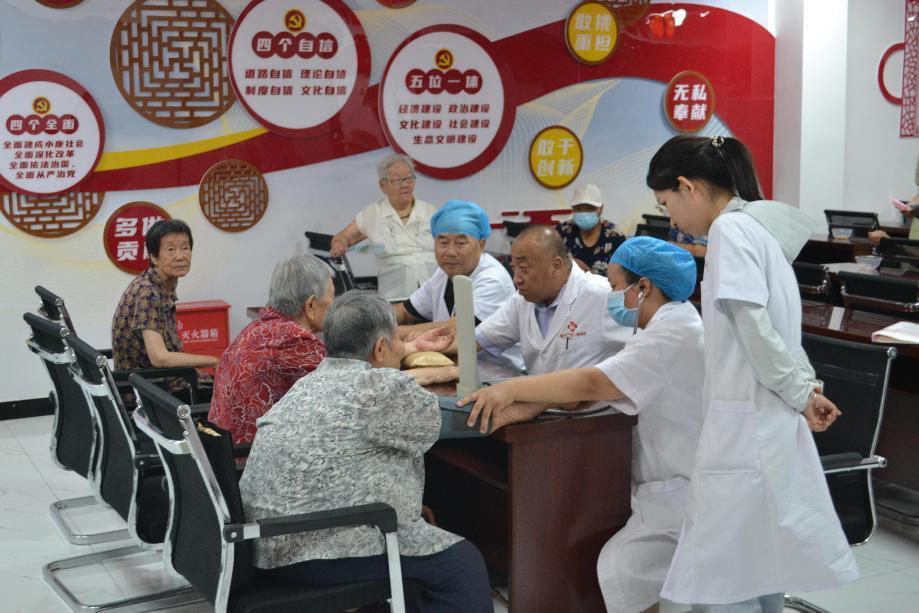 对于辖区行动不便的退休老教师,社区工作人员和医护人员还主动上门进行义诊,带着医疗设备和药品,来到老教师们的家中,为他们进行全面的身体检查。在老教师刘志清的家中,医护人员仔细为他测量了血压和血糖,并询问了他的身体状况和用药情况。刘志清感动地说:“你们真是太好了,这么热的天还专门跑一趟。我行动不方便,平时去医院也很麻烦。这次你们上门为我义诊,让我心里特别温暖。”