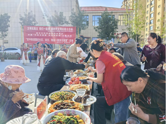 活动现场,各式各样的家常菜很快就摆满了餐桌,大盘鸡、炒米粉、黄面烤肉、薄皮包子……居民们纷纷亮出了自己的拿手好菜,品类丰富,色香味俱全,令人垂涎欲滴。社区工作人员还为居民洗好新鲜的水果,大家围坐在一起,边吃边聊,欢笑声、祝福声不断,气氛热闹非凡,好像又回归了小时候邻里之间的那种亲密感。