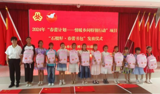 为深入贯彻落实习近平总书记关于妇女儿童工作重要论述,持续实施好“春蕾计划”项目,促进女童健康成长。9月23日,青得里镇举办2024年“春蕾计划——情暖乡间特别行动”项目“石榴籽·春蕾书包”发放仪式,旨在激发孩童笃学好学的动力和培养奋发有为的信念,努力成为新时代社会主义建设优秀接班人。青得里镇党委委员罗月、妇联专干以及近200名受助学生参与活动。