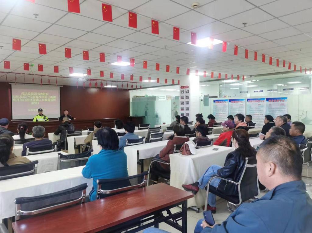 为进一步增强社区居民群众交通安全法律法规意识,培养居民群众良好出行习惯,有效预防和减少道路交通事故的发生,营造文明、有序、畅通的交通环境。10月10日,青达拉街道书香社区邀请博乐市交通管理大队民警走进社区,开展道路交通安全知识讲座,将文明交通之声切实传递到群众心间。