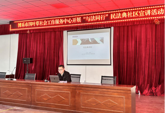 为贯彻落实习近平法治思想,扎实推进《中华人民共和国民法典》宣传教育工作,进一步强化法治乡村的建设,夯实乡村振兴取得的成效,全面营造全民遵法、学法、守法、用法的良好态势。10月11日,博乐市四叶草社会工作服务中心联合贝林哈日莫墩乡夏热勒津村、乌日木则格得村开展“与法同行”民法典社区宣讲活动。