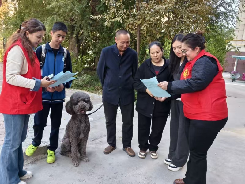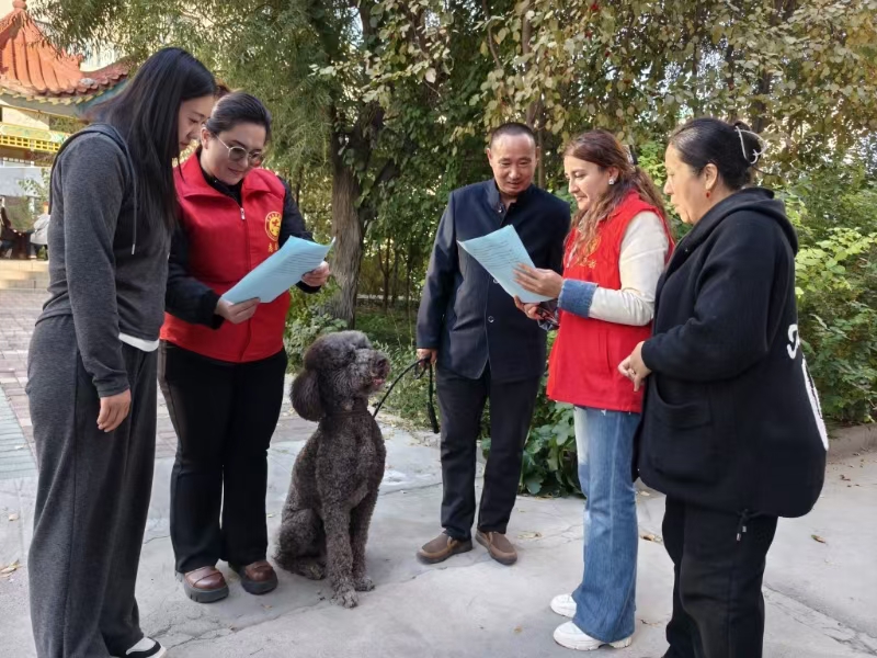 为进一步规范辖区居民养犬行为,保障居民的健康和人身安全,营造安静舒适的生活环境,近日,博乐市顾里木图街道爱博社区开展了“文明养犬进社区”系列宣传活动,引导辖区居民树立文明养犬新风尚。