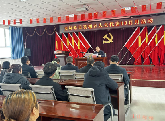 2024年10月30日,贝林哈日莫墩乡人大代表集中进站学习,全体代表学习《新疆维吾尔自治区法治宣传教育条例》《人大代表怎样提出议案和建议》,听取代表本月开展“铸牢中华民族共同体意识·万名代表进万家”宣传宣讲主题活动及联系群众情况。