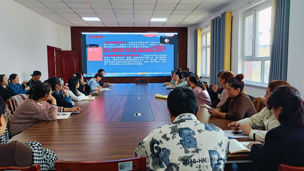 为进一步提升街道落实食品安全属地管理责任工作质效,优化食品安全属地管理工作机制。2024年10月30日下午,博乐市食安办开展食品安全“两个责任”优化工作培训,培训以线上线下相结合的方式开展,主会场设在博乐市市场监督管理局二楼视频会议室,本街道通过腾讯设立分会场参会。由食安办人员及街道、社区食品安全包保干部、各社区食品安全协管员等41人在街道二楼党政会议室通过分会场集中参加了培训。