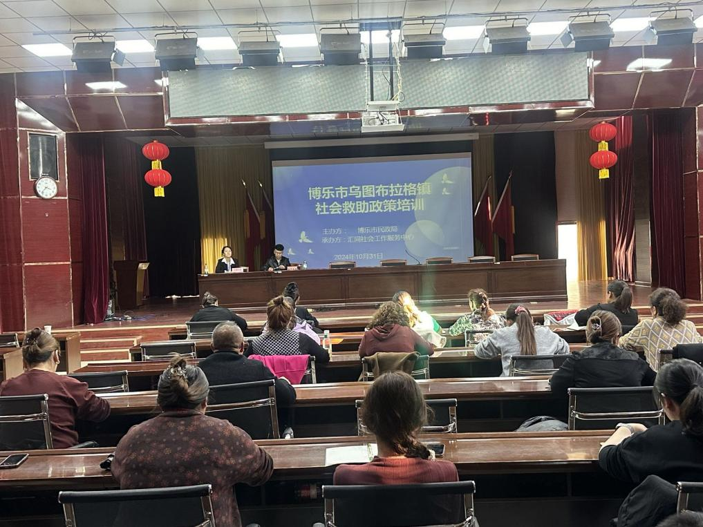 为推动巩固拓展脱贫攻坚兜底保障成果同乡村振兴有效衔接,切实提升基层干部在社会救助领域的业务水平,确保各项救助政策精准高效落地,10月31日,由博乐市民政局主办,汇同社会工作服务中心承办的2024年乌图布拉格镇社会救助政策培训顺利举行。乌图布拉格镇便民服务中心分管领导、民政干部及村队民政专干等34人参加培训。