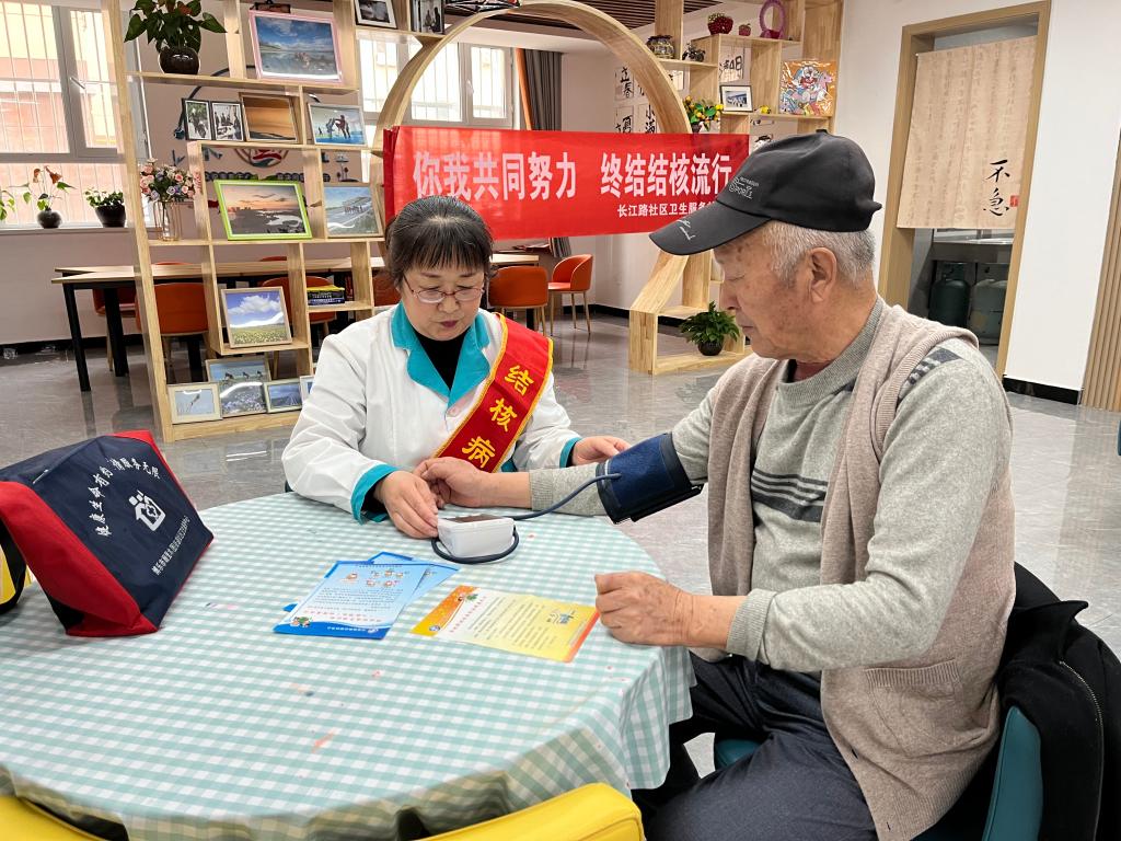 多元服务,托起幸福“夕阳红”。幸福不止于吃得好、住得好,更应满足老年人的精神文化生活需要。社区精心组织多样化的“为老”志愿服务活,为老年人创造“老有所依、老有所乐、老有所学”的晚年幸福生活。针对老年群体常态化开展“敲门行动”,对辖区高龄的独居老人进行“点对点”关爱,为老人提供上门理发、卫生打扫等服务,摸清辖区老年人慢性病底数,并定期开展血压、血糖测量等服务,并有针对性的普及健康知识,提供健康咨询指导,开展健康知识小课堂;针对老年群体的学习兴趣,为老年人提供生活服务、文化学习、娱乐健身、咨询调解等场所,打造家门口养老的“幸福驿站”。这一系列有温度、接地气的活动,让辖区的“银发族”幸福感倍增。