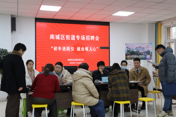 就业是民生之本,是最大的民生工程、民心工程。今年以来,南城区街道持续加大力度,积极拓宽就业渠道,突出做好重点群体就业工作,全方位提升公共就业服务水平,通过引进密集型劳动企业,建立家门口的“就业圈”,开展各类实用型技能培训,举办“初冬送岗位,就业暖人心”专项招聘,让千家万户端稳就业饭碗。