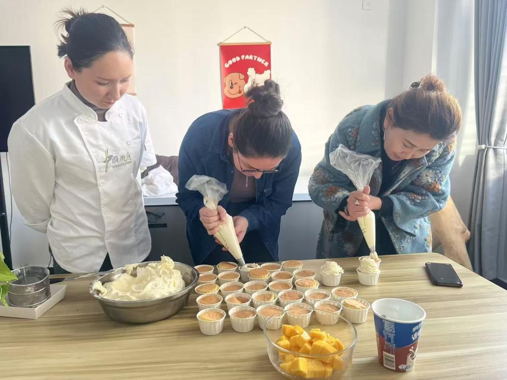 走进祥瑞社区烘焙室,空气中弥漫着奶油和面粉交织的诱人香气。在烘焙老师的指导下,大家细致聆听,各个步骤井然有序,从鸡蛋分离到打发蛋白,从奶油绘制到精心包装,每一步都充满了乐趣与挑战。宝妈们纷纷表示:“我们平时总是忙于照顾孩子和家庭,难得有这么放松的机会,今天的活动,既让我们学习到了新技能,又能与其他宝妈深入的交流,特别开心!”