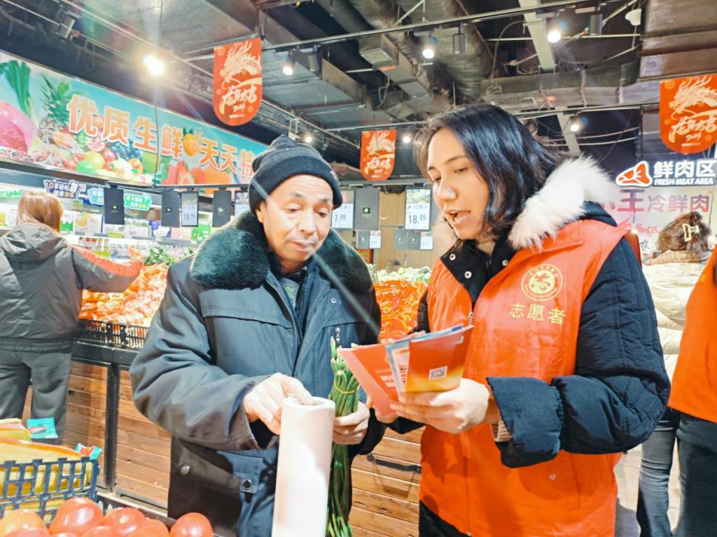 今年12月4日是第十一个国家宪法日,在第七个“宪法宣传周”来临之际,为大力弘扬宪法精神,普及法律知识,增强居民的法治意识。12月3日,青达拉街道书香社区联合共建单位博乐市人大,组织普法志愿者在辖区我爱我家超市开展“‘超’市遇宪法 生活有依‘法’”为主题的宣传活动。旨在借助商超实景,以案释法解读宪法关联法条,助居民掌握在消费、物权等日常场景运用宪法思维分析问题方法。