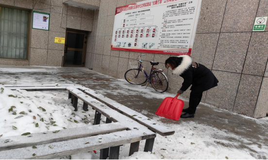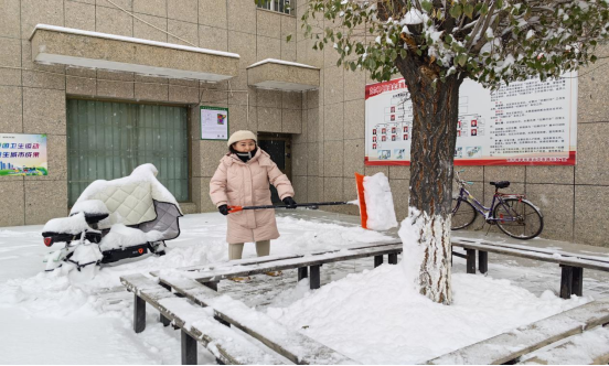 社区工作人员一边扫着雪,一边提醒着路过的行人:“路滑慢行,注意安全!”路人们纷纷露出了欣慰的微笑。同时,各网格长通过微信居民群第一时间转发最新气象预警信息。
