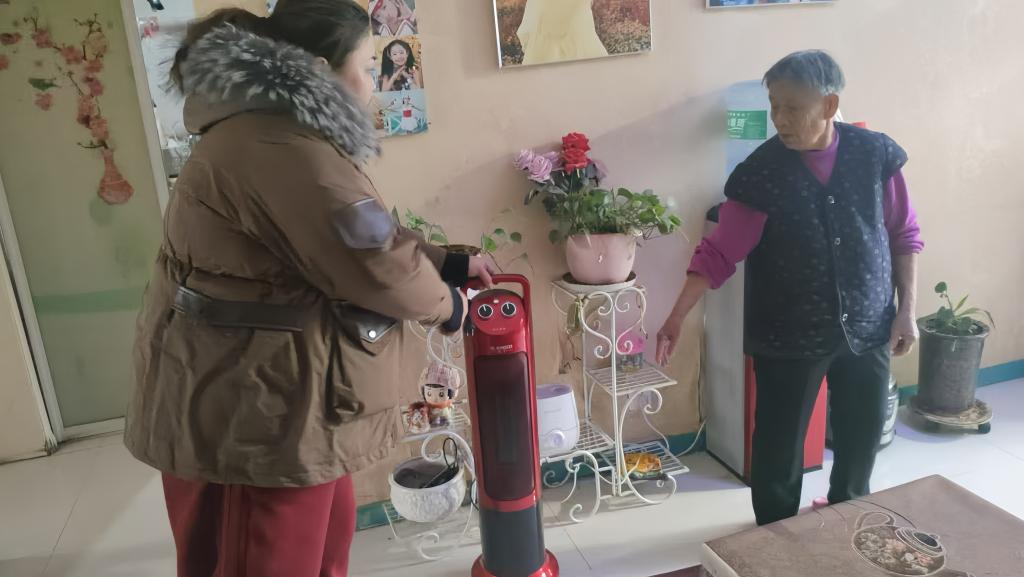 在入户时长江路社区工作人员高娃,针对该楼高龄、孤寡、空巢老人并且询问老人的情况,由于维修管道停暖,老人家中是否有电褥子、电暖器等取暖设备,家中无取暖设备的,社区工作人员为老人家中送去了取暖设备,并且叮嘱老人用电采暖时一定要注意安全。