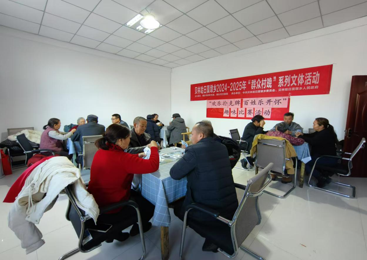 12月16日,贝林哈日莫墩乡人民政府举行了2024 - 2025年“群众村晚”系列文体活动——“双扣”比赛。“双扣”作为一项深受大家喜爱的传统纸牌游戏,不仅具有趣味性,更蕴含着独特的文化魅力与社交价值。此次活动吸引了众多村民踊跃参与,现场气氛热烈,欢声笑语不断,展现出了乡村文化生活的独特魅力。