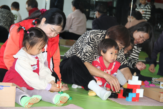 活动现场气氛热烈非凡。在亲子摆积木游戏环节,家长和孩子齐心协力,一双双巧手让积木仿佛有了生命,它们在亲子手中逐渐变成了充满奇思妙想的创意之作。孩子们的动手能力、空间想象力和逻辑思维能力在这个过程中得到了充分锻炼。而亲子小运动环节更是将欢乐推向了高潮,简单有趣的动作引发了阵阵欢声笑语,亲子间的距离在这一刻被迅速拉近,浓浓的亲情在互动中升温。