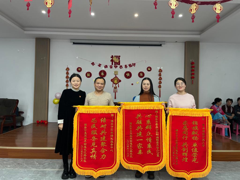为进一步深化长江路社区与共建单位间的互助合作,增强彼此凝聚力,12月26日下午,长江路社区向博州人力资源和社会保障局、博乐市委机构编制委员会办公室、博尔塔拉开放大学以及博乐市园林绿化服务中心四家共建单位赠送锦旗,诚挚感谢他们在共建活动中的全力支持与紧密配合。