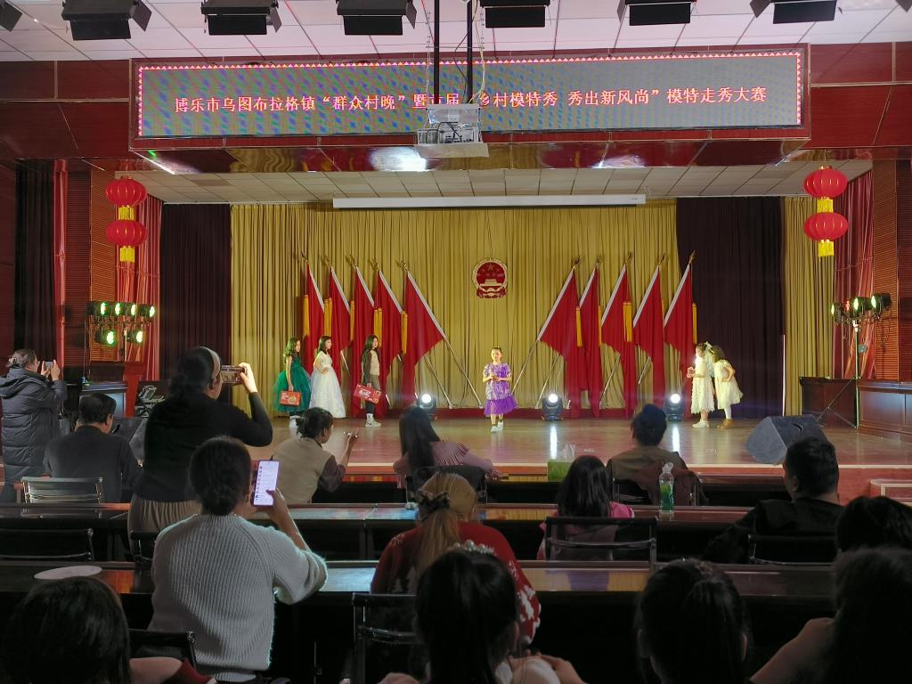 为丰富乡村文化生活,展现新时代农民精神风貌,1月17日博乐市乌图布拉格镇成功举办“群众村晚”暨首届“乡村模特秀 秀出新风尚”模特走秀大赛。活动现场气氛热烈,为当地群众带来了一场精彩的文化盛宴。
