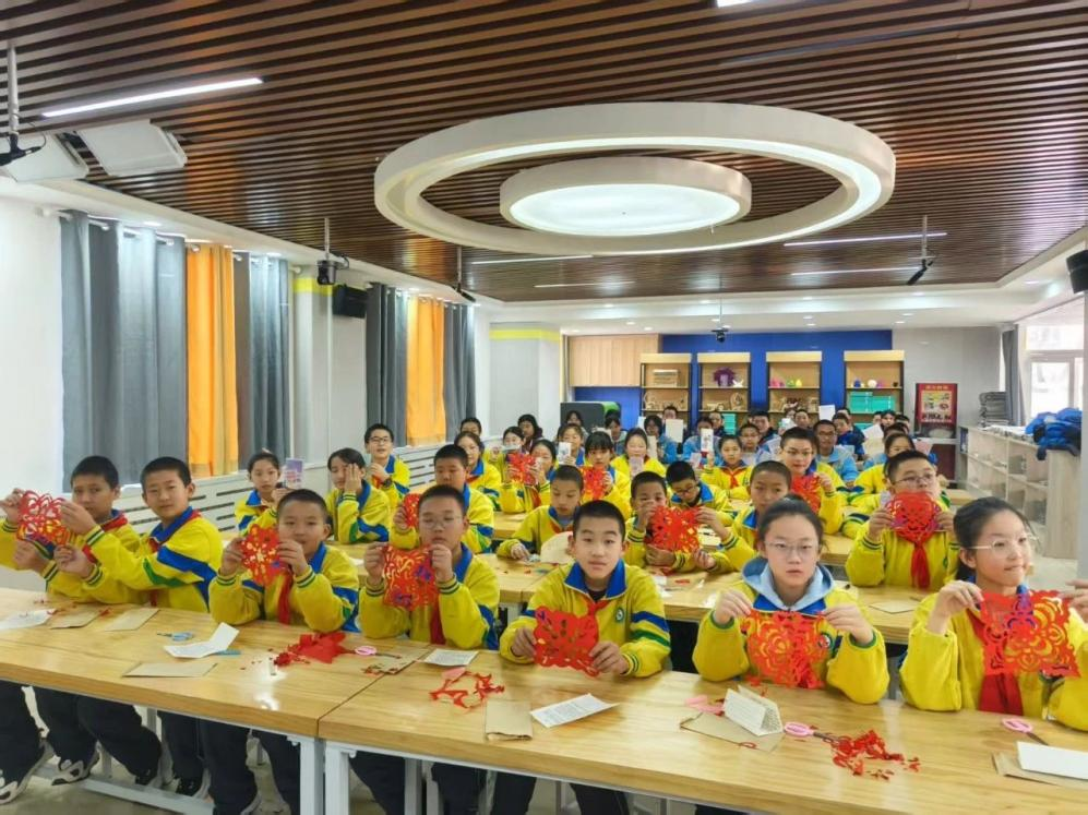与此同时,社区工作人员和学生们一起动手剪窗花。彩纸在他们手中翻转、折叠,剪刀轻快地游走,不一会儿,一幅幅精美的窗花便诞生了。有象征团圆的圆形图案,有寓意吉祥的福字,还有栩栩如生的小动物,每一幅都饱含着浓浓的年味和深深的牵挂。
