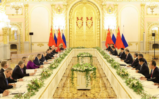 习近平指出,近年来,在双方共同努力下,中俄关系保持稳定、健康、高水平发展态势,长期睦邻友好、互利合作共赢成为两国关系的鲜明特征。两国政治互信根基越扎越深,务实合作纽带越系越牢,人文交流和地方交往越来越红火,新时代的中俄关系更加从容自信、稳定坚韧。历史和现实充分证明,持续发展和深化中俄关系,是传承两国人民世代友好的应有之义,是双方彼此成就、促进各自发展振兴的必然选择,也是捍卫国际公平正义、推进全球治理体系改革的时代呼唤。
