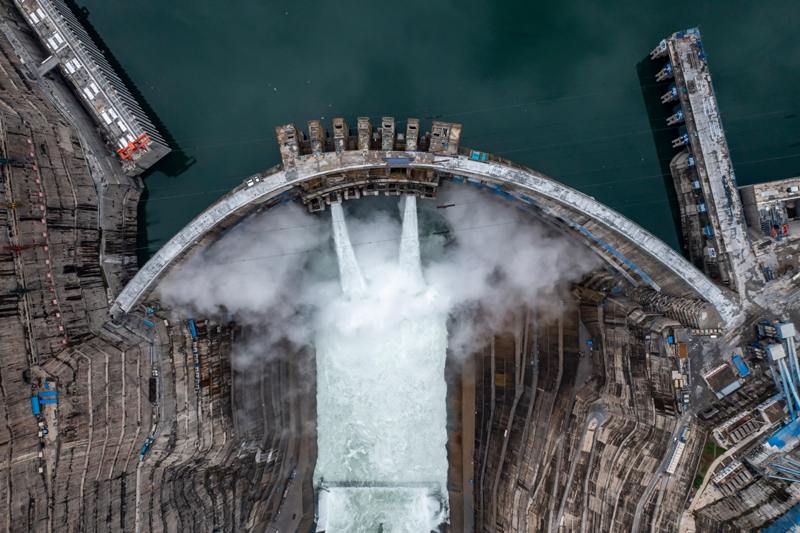 俯瞰白鹤滩水电站(无人机照片,6月28日摄)。