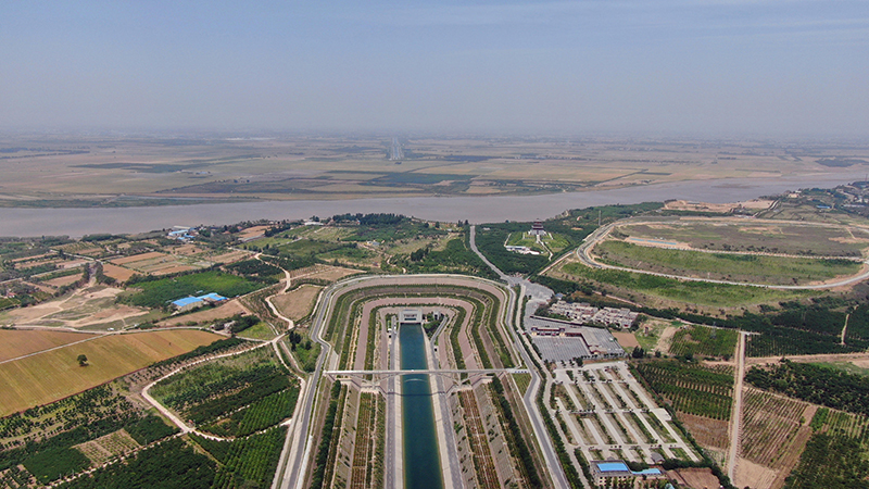 这是南水北调中线控制性工程——穿越黄河工程(5月23日摄,无人机照片)。新华社记者 刘诗平 摄