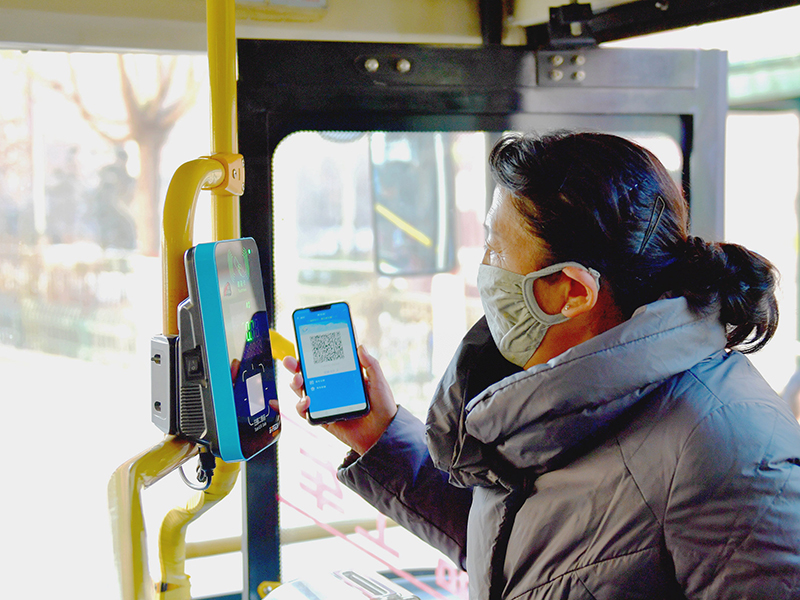 青海省西宁市民在使用二维码扫码乘坐公交车(2018年11月22日摄)。新华社记者 张龙 摄