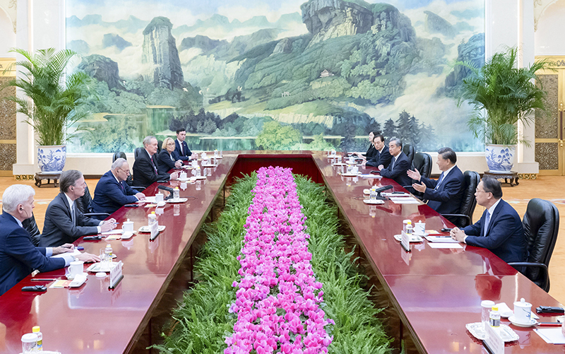 10月9日下午,国家主席习近平在北京人民大会堂会见美国国会参议院多数党领袖舒默率领的美国国会参议院两党代表团。新华社记者 翟健岚 摄