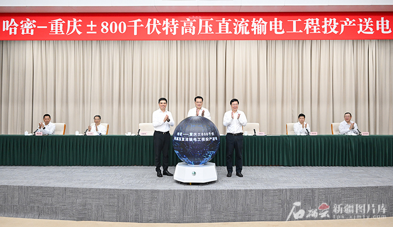 自治区党委副书记、自治区主席艾尔肯·吐尼亚孜,重庆市委副书记、市长胡衡华,国家电网有限公司董事长张智刚一同启动投产并致辞。国家电网有限公司总经理庞骁刚一同启动投产。