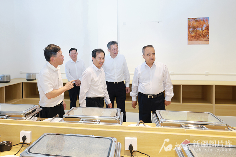 7月4日,自治区党委书记、兵团党委第一书记陈小江,自治区党委副书记、自治区主席艾尔肯·吐尼亚孜来到位于阿拉尔市的塔里木理工学院,详细询问学校规划建设和招生准备工作进展。石榴云/新疆日报记者 崔志坚摄