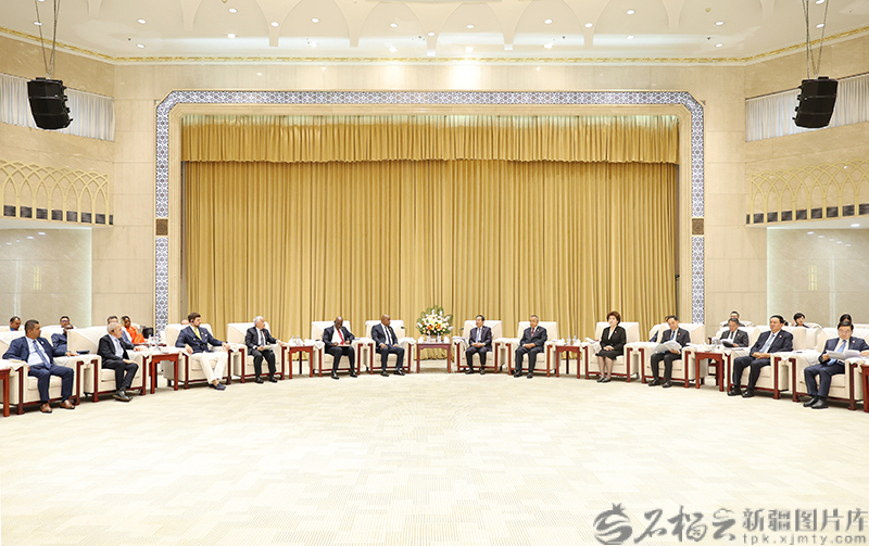 石榴云/新疆日报讯 9月13日,自治区党委书记陈小江、自治区主席艾尔肯·吐尼亚孜在乌鲁木齐会见了多米尼克议长伊萨克、利比里亚众议长库恩等出席2025年国际议员友好交流论坛的中外嘉宾。