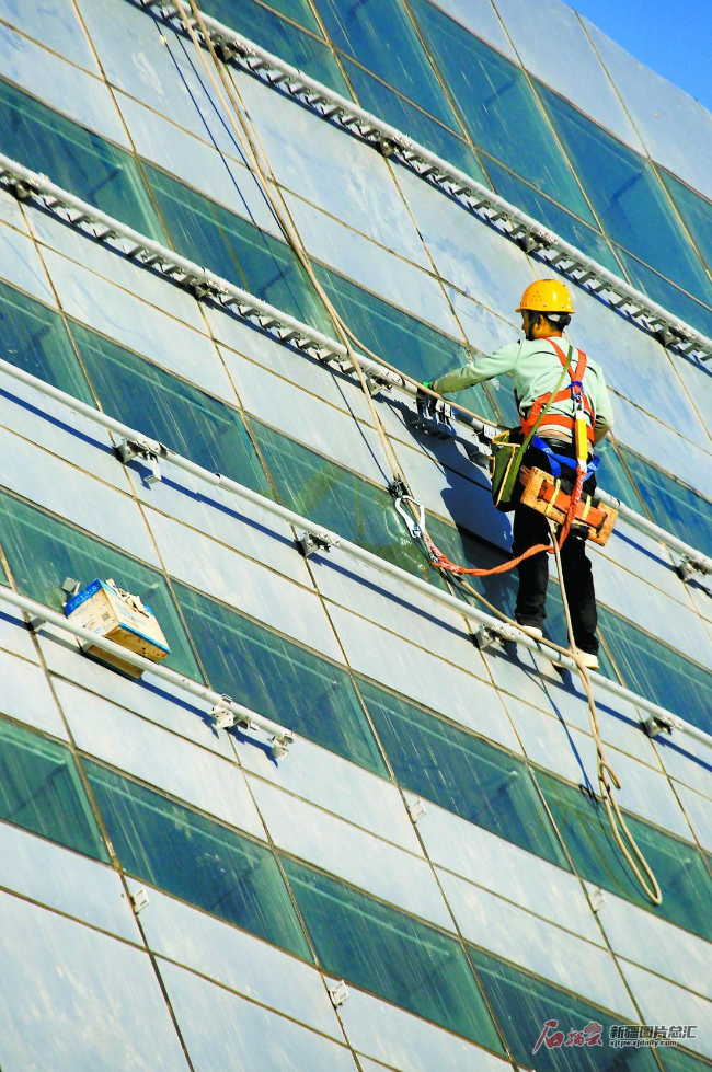 工人在乌鲁木齐奥林匹克体育中心体育场进行外墙施工(4月12日摄)。该中心由体育场、综合体育馆、全民健身馆、游泳馆、田径馆及运动员宾馆等建筑群组成。目前,体育馆和健身馆已交付使用,其他场馆预计7月底完工。天山网-新疆日报记者蔡增乐摄