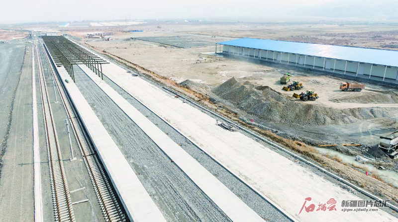 精河国际公铁联运综合物流园配套设施建设项目一角(3月23日无人机拍摄)。今年,精河县计划建设重点项目84个,总投资54.84亿元。于苏甫·艾尼摄