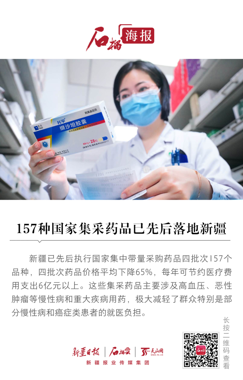 天山网-新疆日报讯(记者赵敏报道)记者从自治区医疗保障局获悉:目前,新疆已先后执行国家集中带量采购药品四批次157个品种,四批次药品价格平均下降65%,每年可节约医疗费用支出6亿元以上。