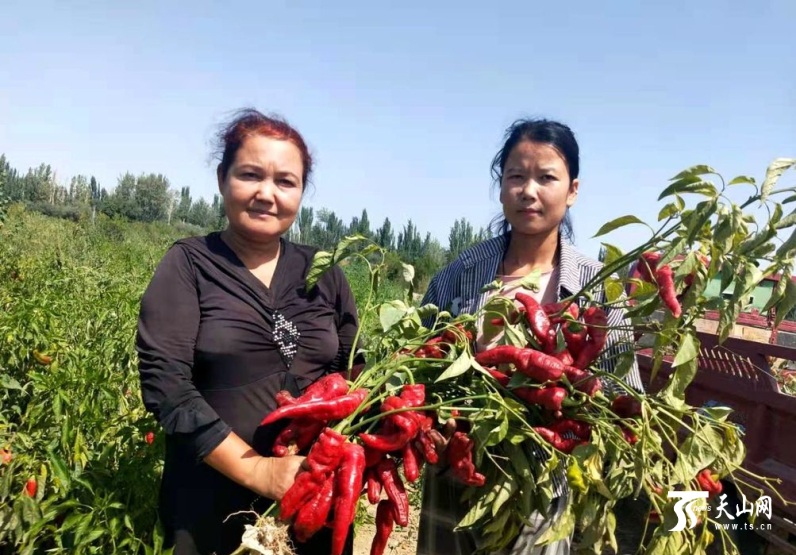 今年,在浙江省嘉兴市援疆指挥部的帮扶下,沙雅县英买力镇英买力村色素辣椒增产增收。通讯员方旭摄