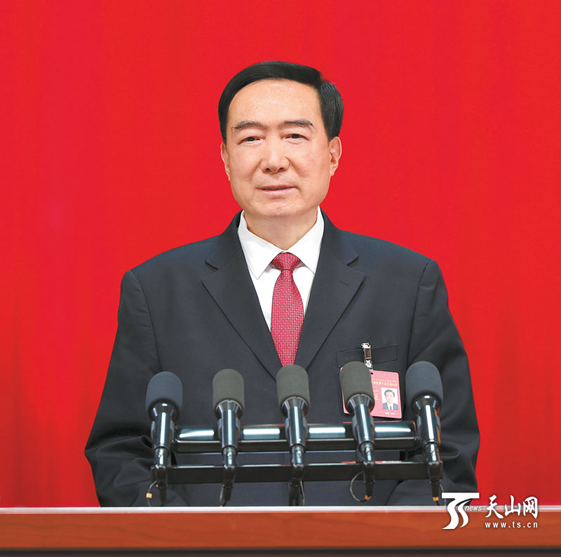 陈全国代表中共新疆维吾尔自治区第九届委员会向大会作报告 艾尔肯·吐尼亚孜主持